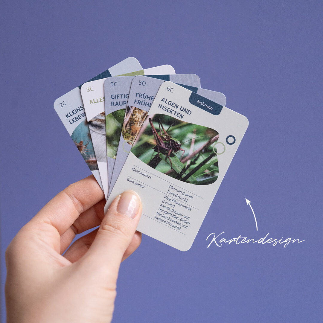 Gestaltet wurden 52 Spielkarten, eine ausführliche Anleitung sowie ein ergänzendes Beiblatt. Zusätzlich wurde das Verpackungsdesign konzipiert und umgesetzt.